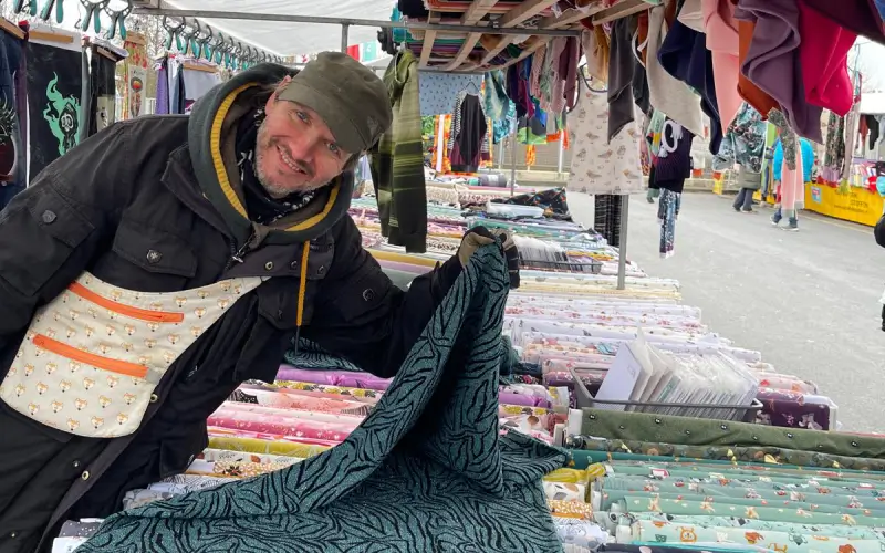 Sie finden uns regelmäßig auf dem Stoffmarkt, wo wir unsere nachhaltigen Stoffe und Zubehör präsentieren – perfekt, um Ihre Kreativität direkt vor Ort auszuleben!